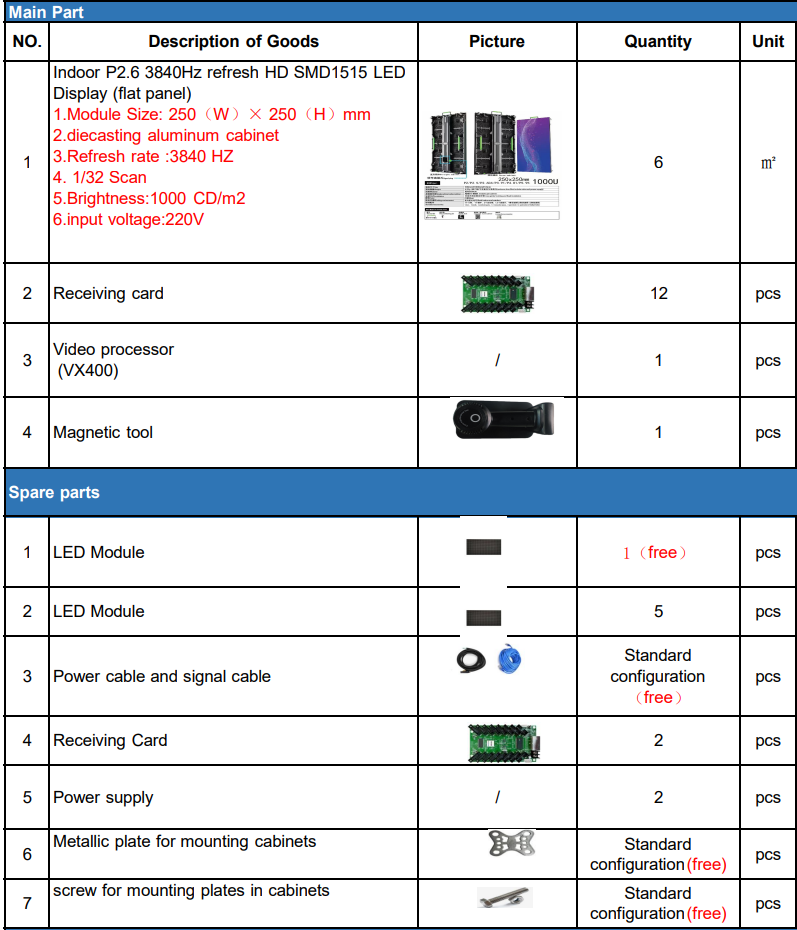 The cabinet size of the Indoor P2.6 LED Display is 500 mm in width and 1000 mm in height.