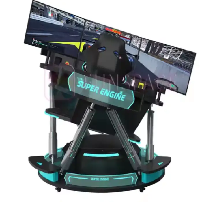 The 6 DOF electric platform provides advanced motion capabilities, allowing for realistic movements that simulate the feeling of driving and racing.