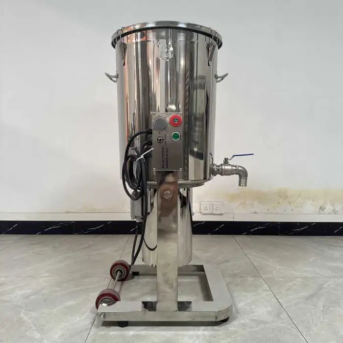 The machine weighs 40 kg, making it robust yet manageable for industrial kitchen setups.