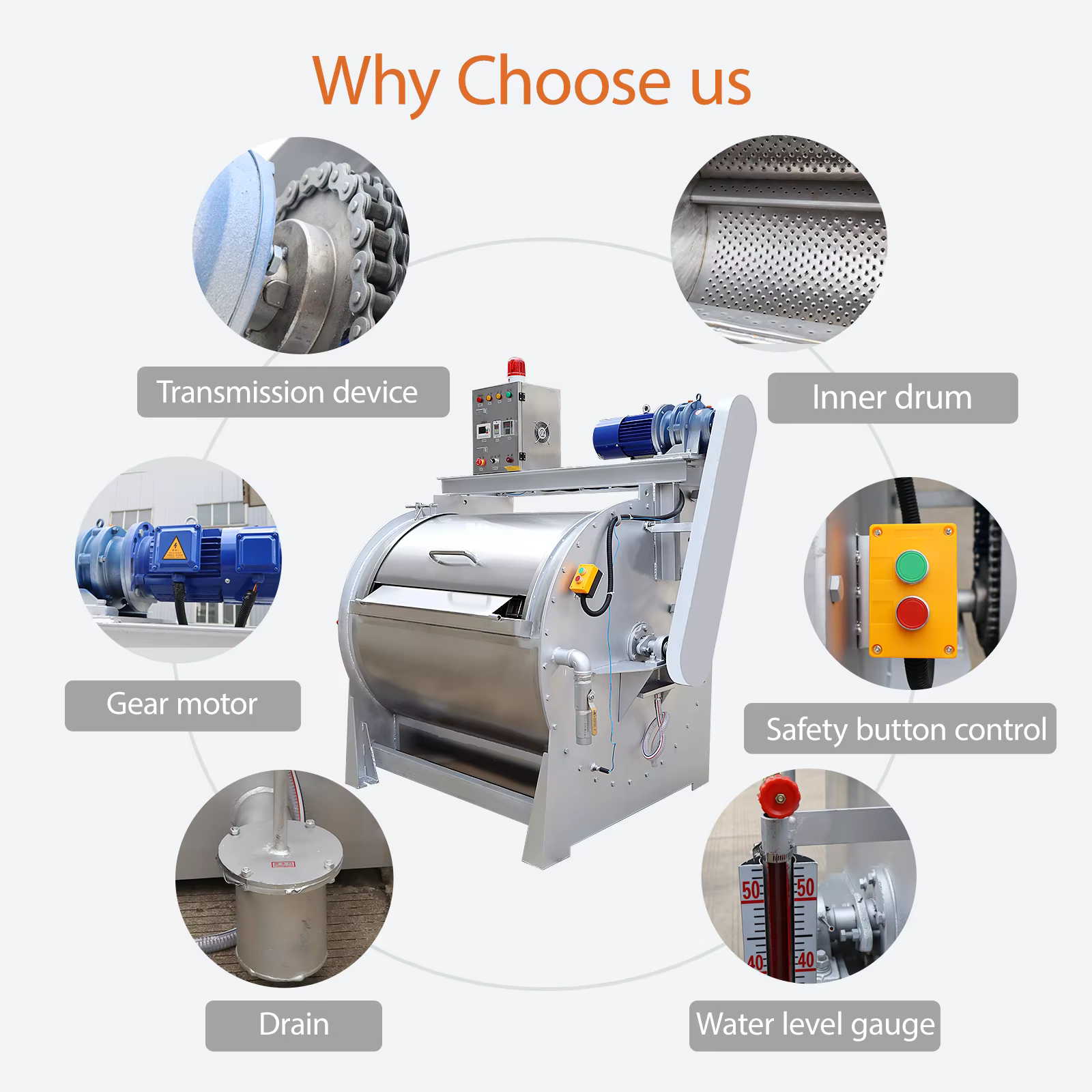 Key features include high capacity for large loads, residue-free cleaning, non-toxic process, and durable construction for heavy-duty use.