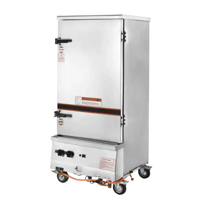 The steamer has a double desk design, providing an efficient cooking space for large-scale food preparation.