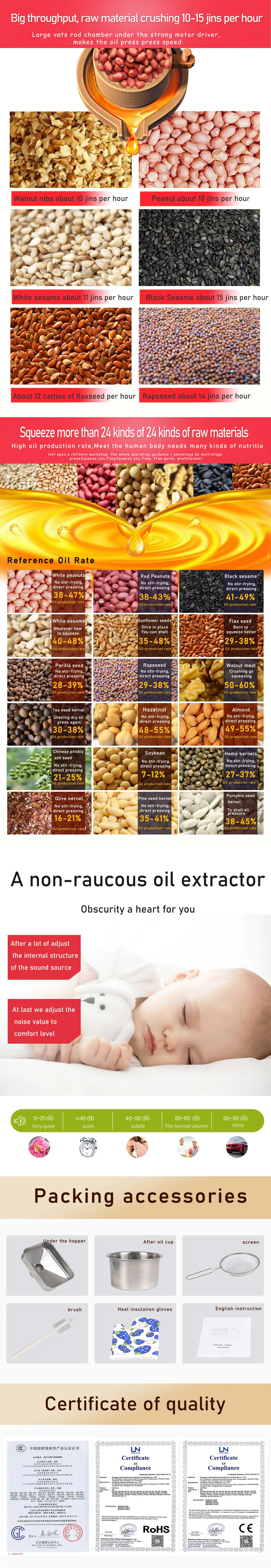The K18 can extract oil from a variety of seeds including peanuts, sunflower seeds, sesame seeds, and more.