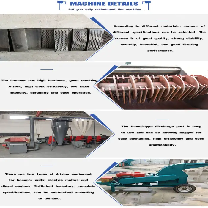 The primary function of this machine is to crush wood branches, straw, and grass into fine sawdust, making it ideal for wood pellet production and processing animal feed.