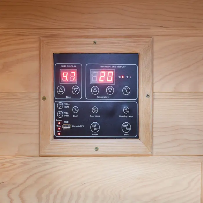 The sauna is equipped with an easy-to-use computer control panel, allowing you to adjust temperature, duration, and other settings with ease.