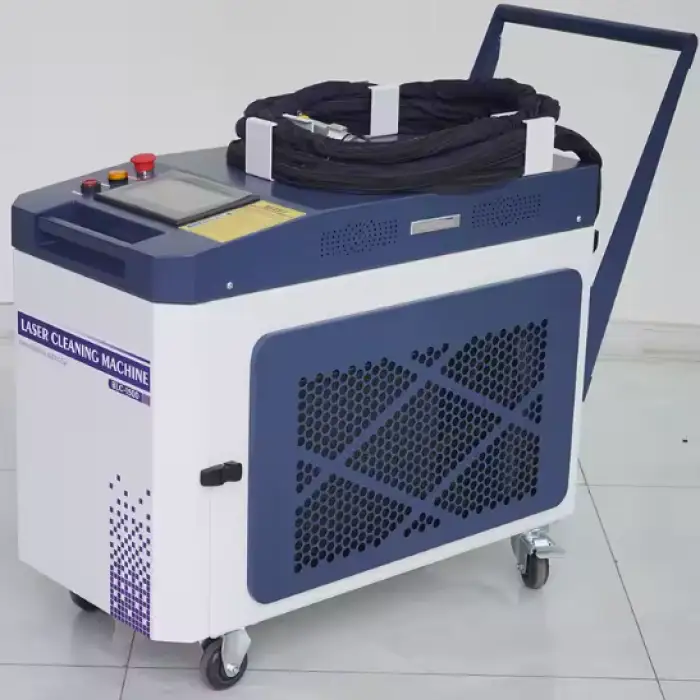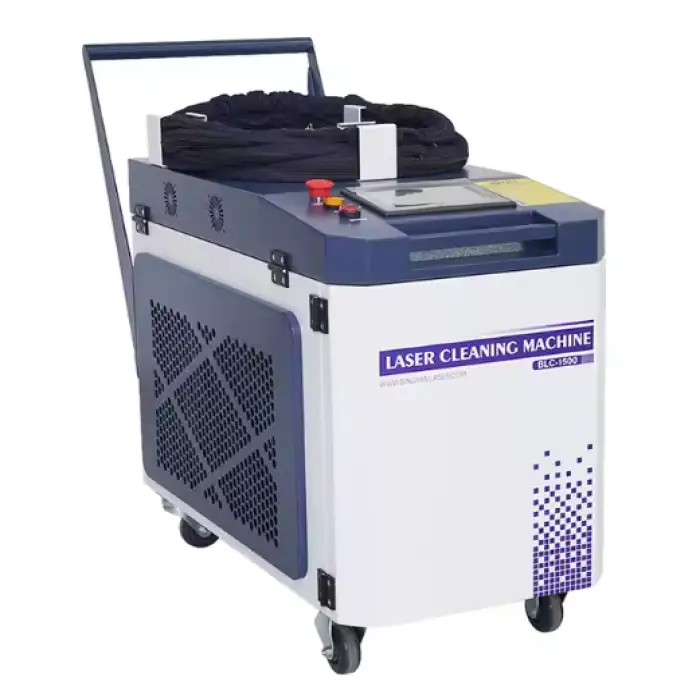 The machine uses advanced laser technology to remove rust, paint, and oil without damaging the underlying material, ensuring a non-touch cleaning method.