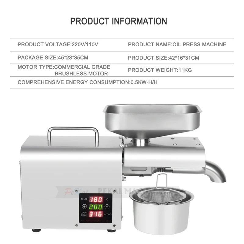 The LBT01T is designed to extract oils from a variety of seeds, including peanuts, coconuts, olives, and more.