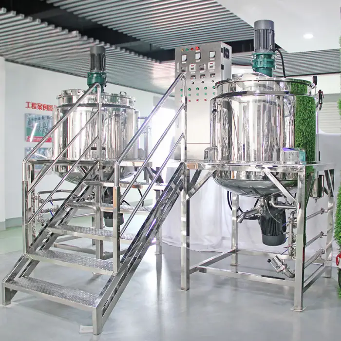 This machine is designed for mixing and producing various cosmetic products, including liquid soaps, lotions, shampoos, and hand sanitizers.