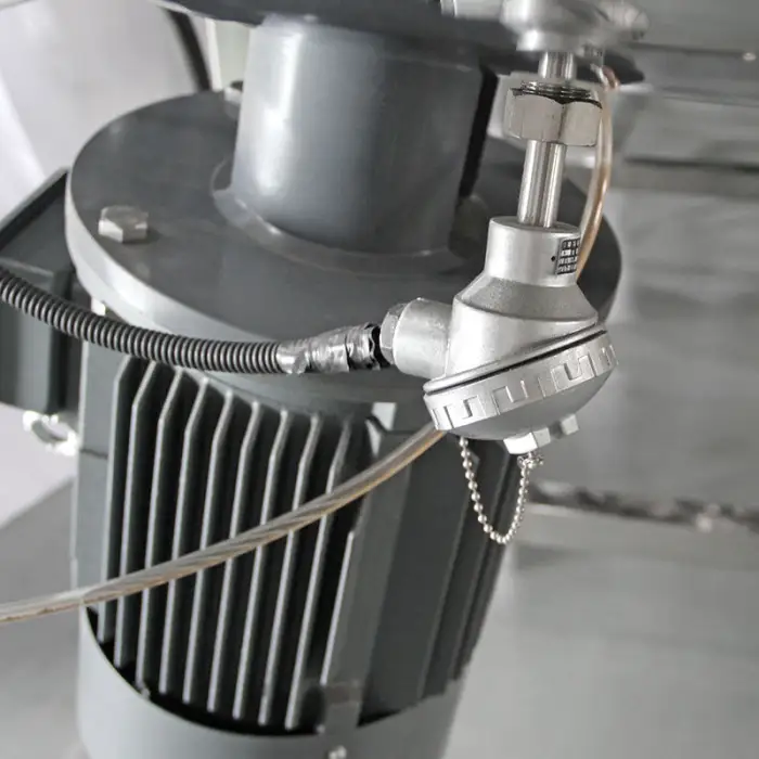 The machine uses agitator mixing technology, which is effective for thorough blending of viscous materials.