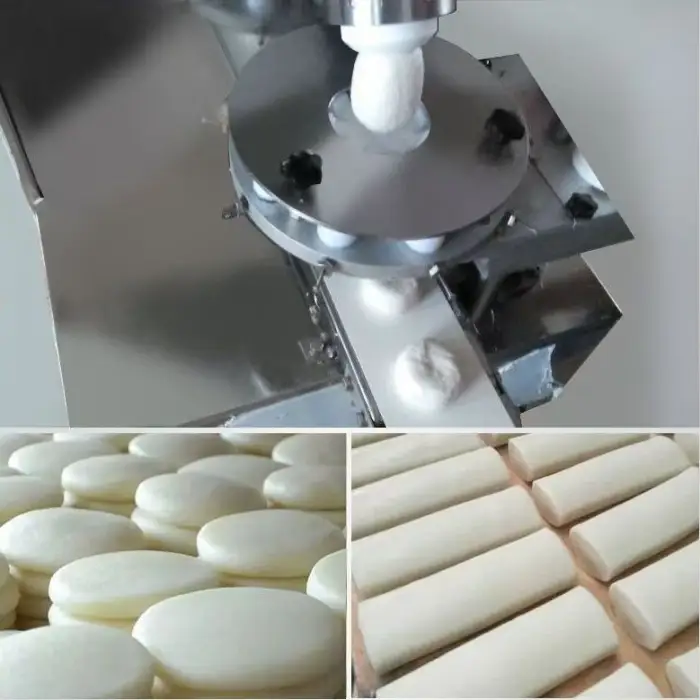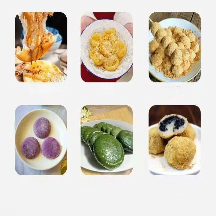 The machine is specifically designed for making glutinous rice cakes, but it can also be used for other snack foods.