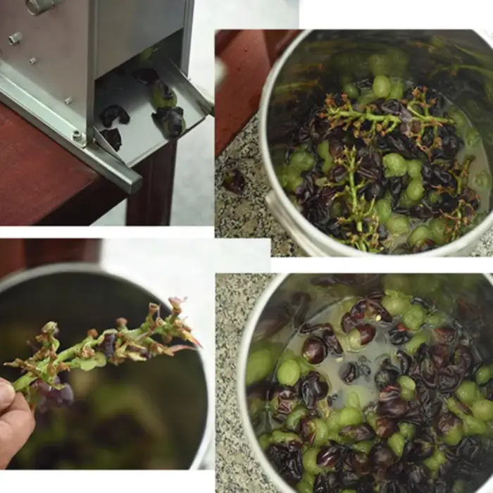 Simply place the grapes in the machine, manually operate it to destem and crush the grapes, and collect the juice.