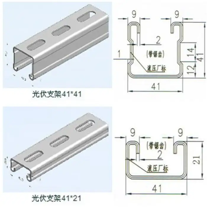 The solar strut channel roll forming machine is suitable for processing materials with a thickness of 0.3 to 0.8 mm.