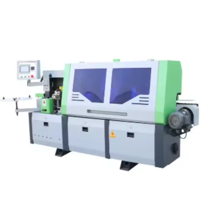 The machine is ideal for applications such as furniture manufacturing, cabinet production, decorative panel finishing, and more.
