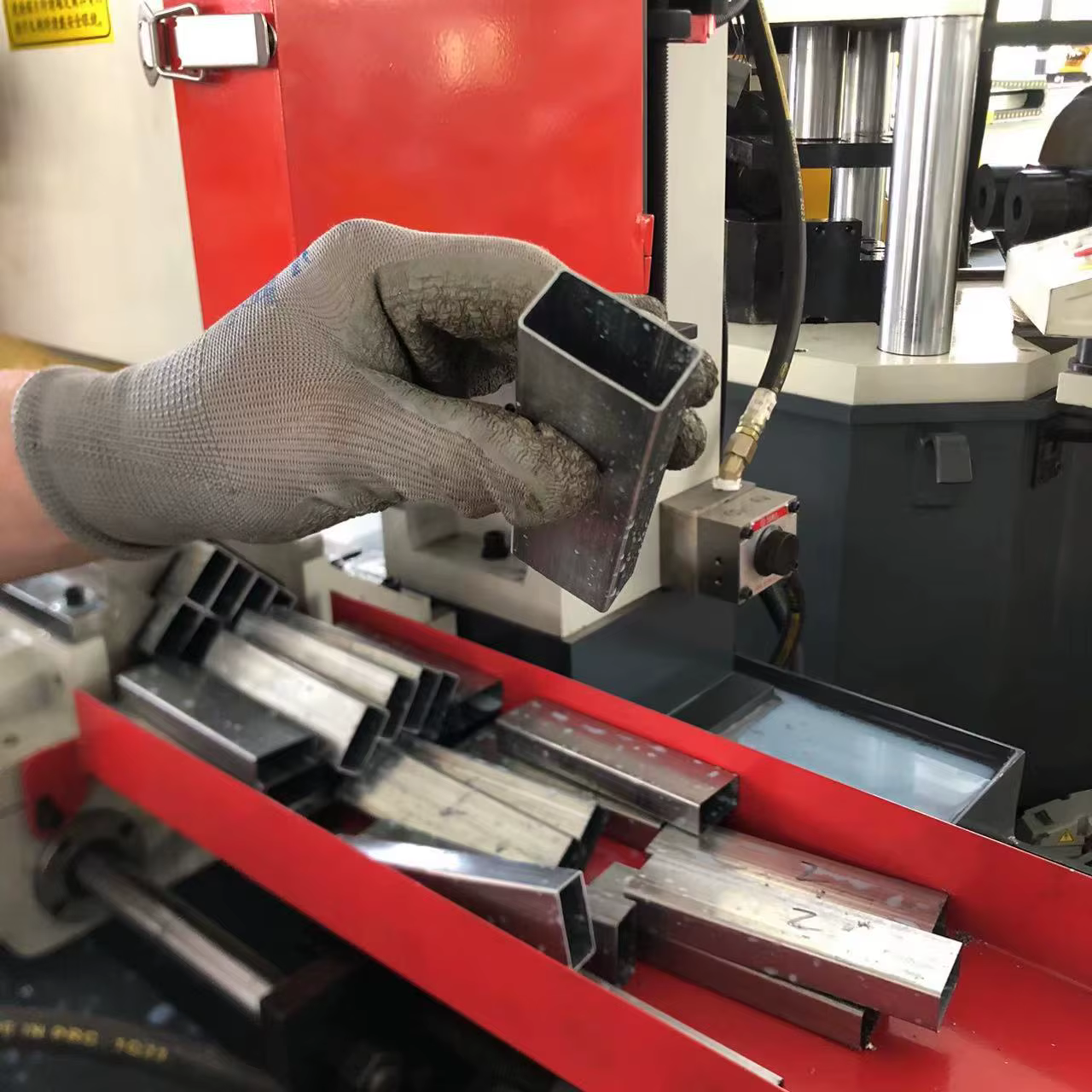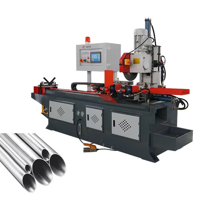 This machine is designed to cut various metal materials, including pipes and profiles used in manufacturing.