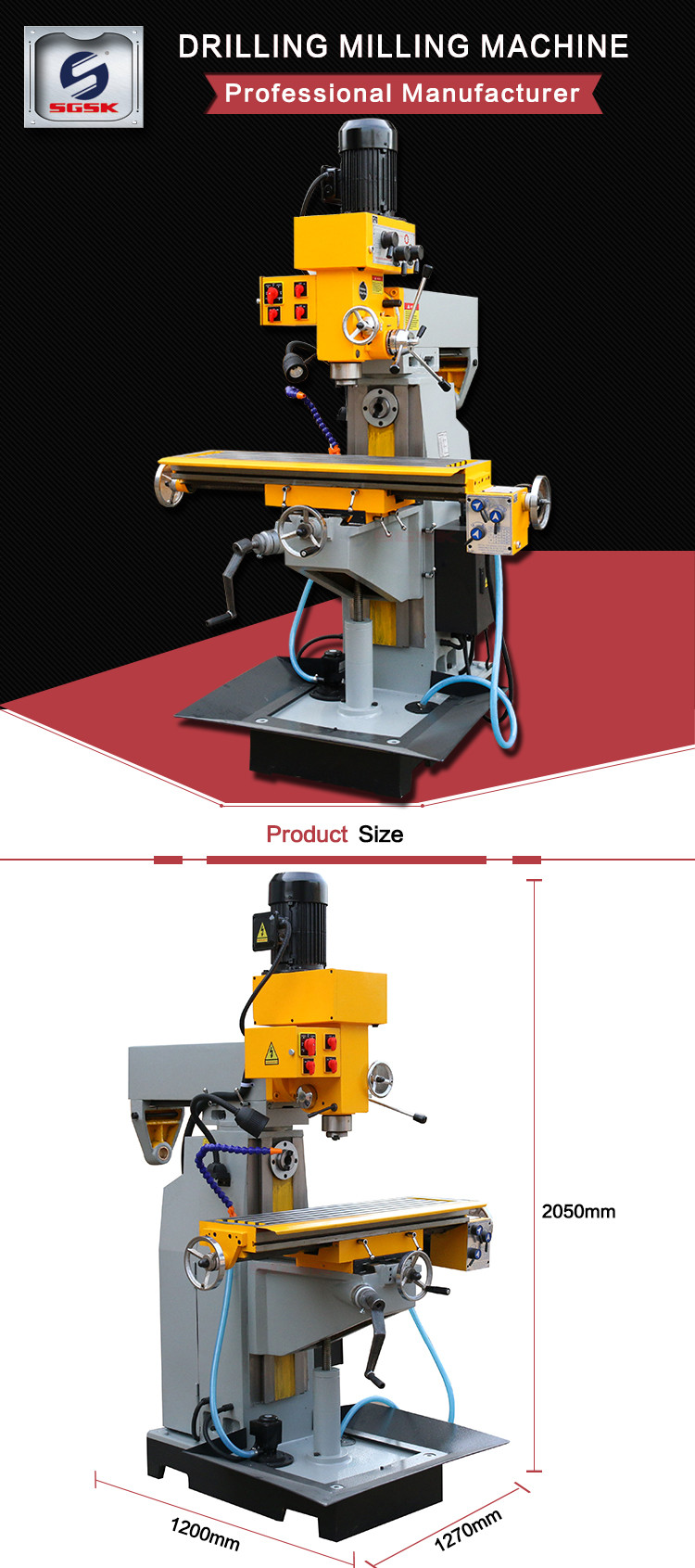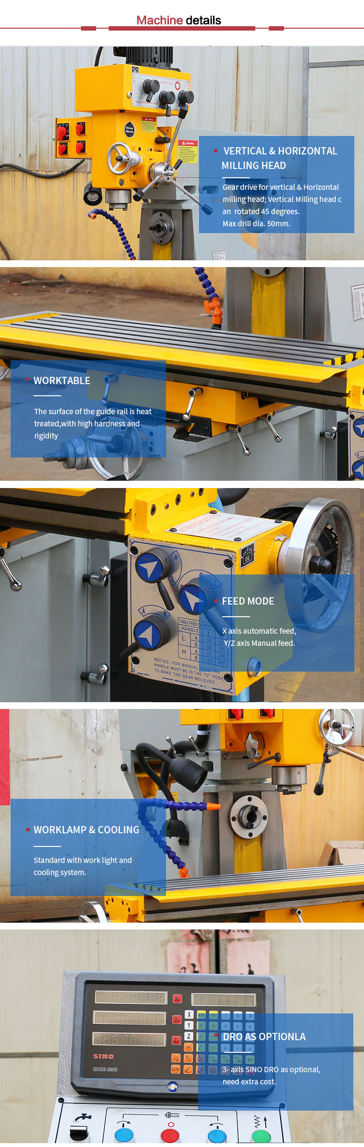 The spindle speed range is 90-2000 RPM for vertical milling and 80-1300 RPM for horizontal milling.