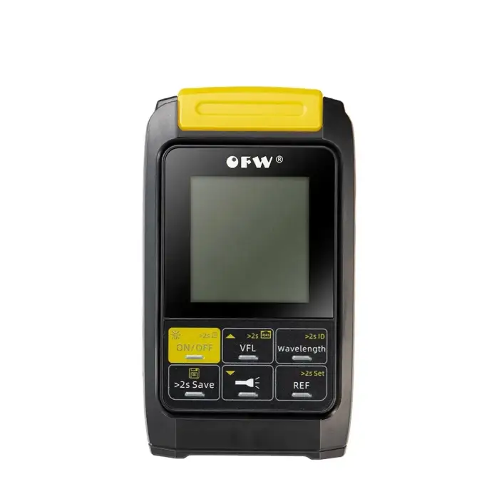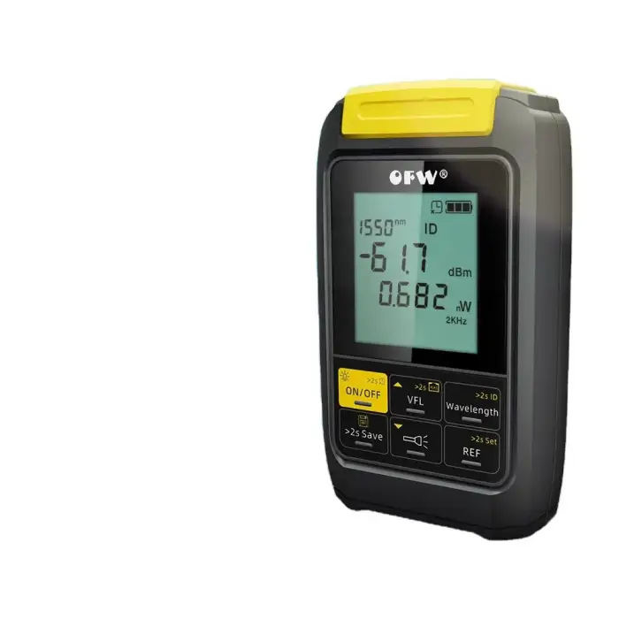 The device features an easy-to-read display that shows power levels in dBm, allowing you to quickly assess the performance of the optical fiber network.