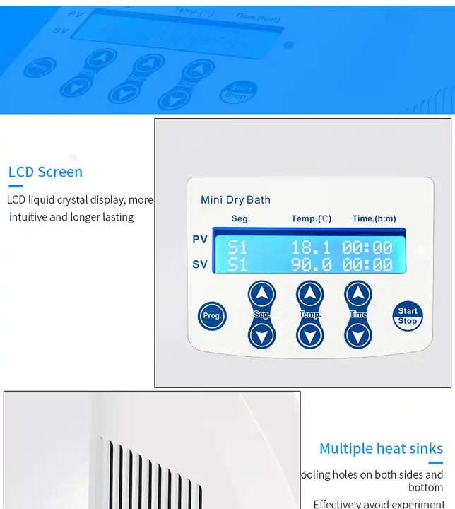 The incubator can heat from 20°C to 100°C in less than 15 minutes.