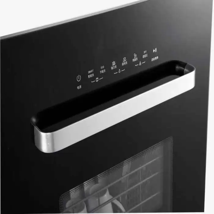 The Mini Household Portable Dishwasher is designed to be compact, making it suitable for small spaces, but specific dimensions can be found in the product specifications.