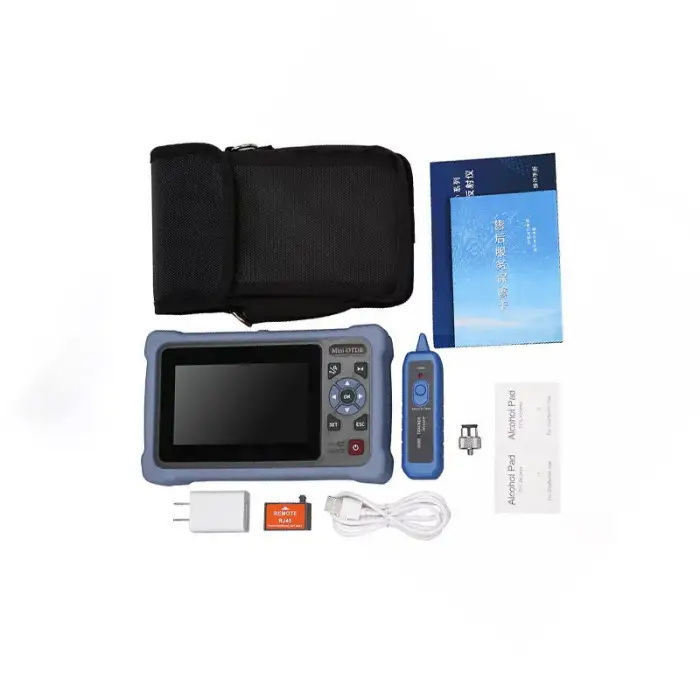 The package typically includes the OTDR device, charging cable, user manual, and other necessary accessories for operation, but verify with your purchase for specific items included.