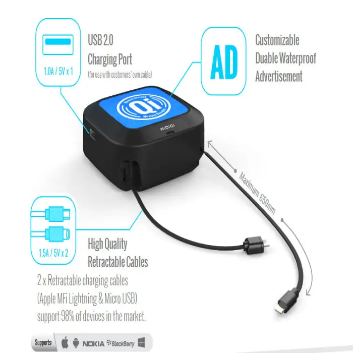 You can use it at home, in offices, retail environments, public cafes or libraries, and during events or conferences for convenient charging.