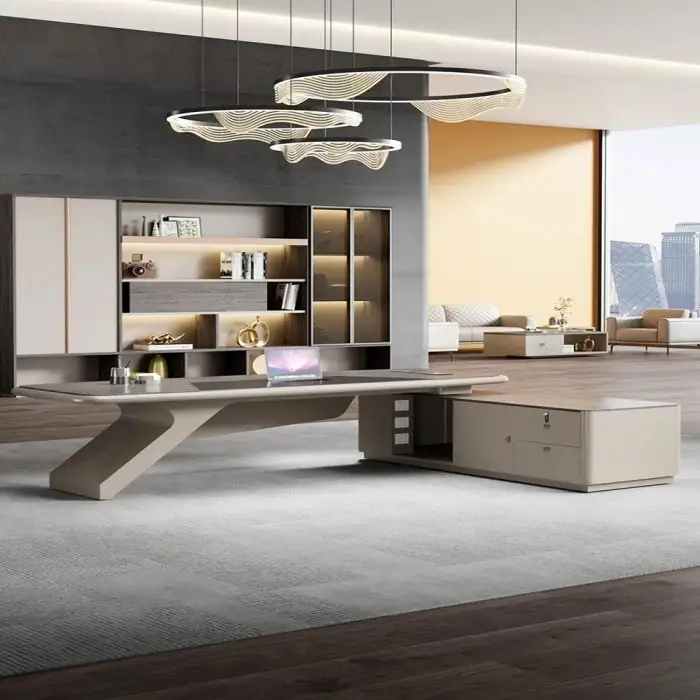 The desk comes in a modern work office desk style.