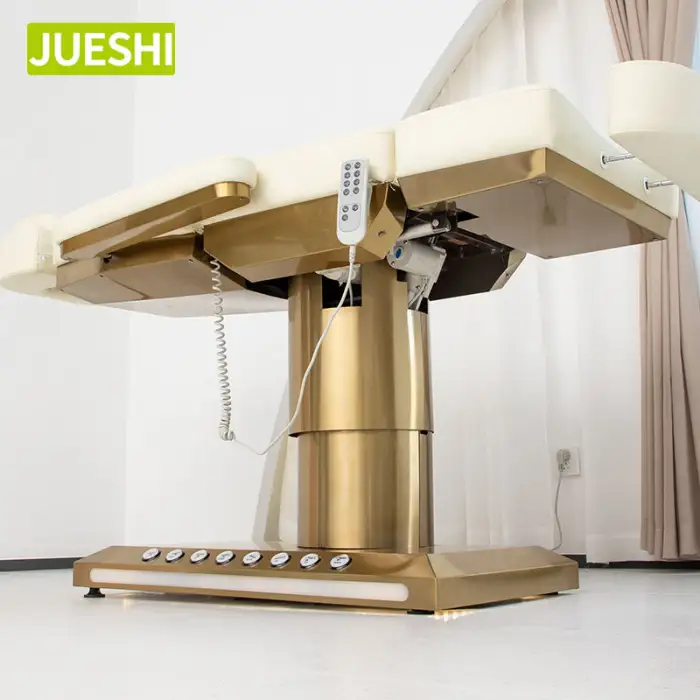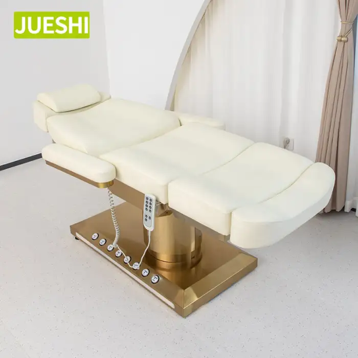 The beauty bed is equipped with four powerful motors for adjustable height and positioning.
