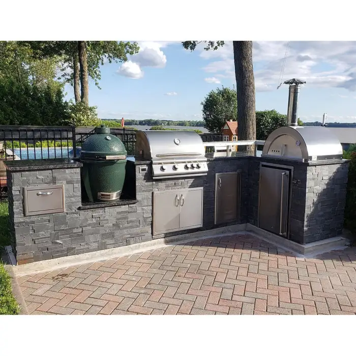 The Modular Outdoor Kitchen Cabinet is equipped with a flame safety device for added protection while cooking.