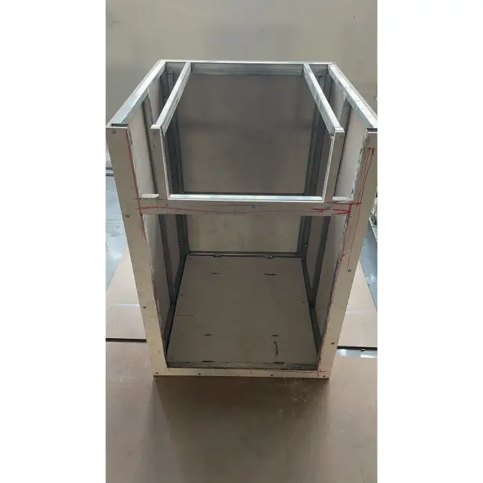 The kitchen cabinet is easy to clean due to its stainless steel construction, which can be wiped down with a damp cloth and mild detergent.