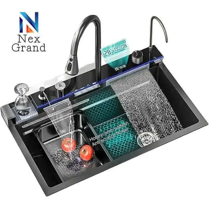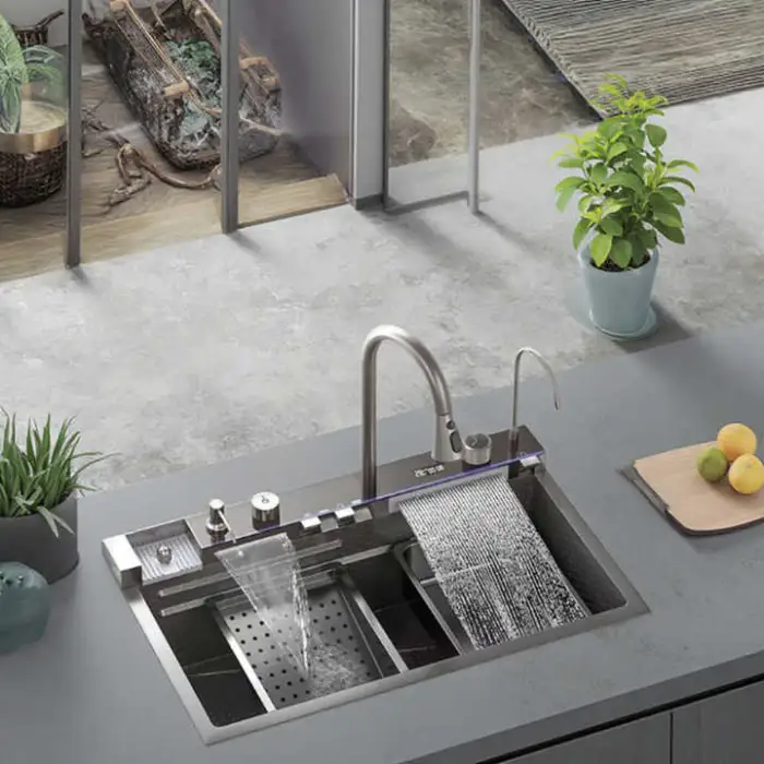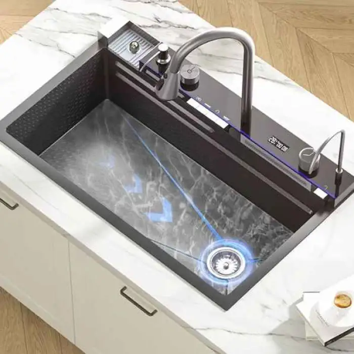 The modern design of the sink enhances any kitchen decor, making it a versatile addition to both contemporary and traditional kitchens.