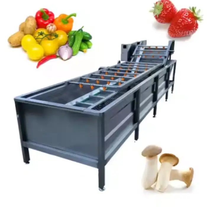 The efficient air bubble washing technology cleans vegetables by using bubbles to gently lift and remove dirt and debris.