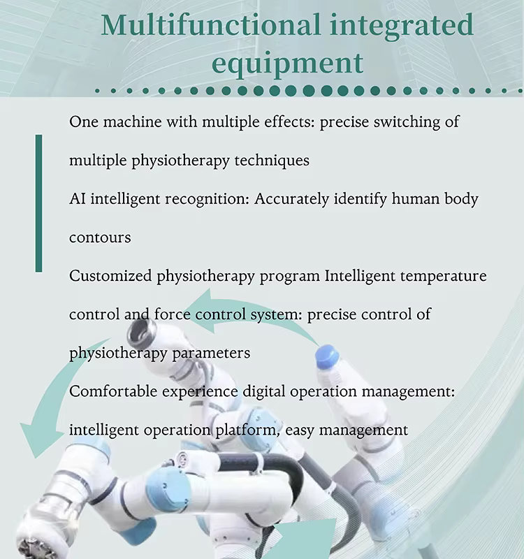 The Multifunctional Laser Wave Therapy Massage Robot is an advanced device designed to relieve pain, reduce stress, and assist in rehabilitation through various therapeutic functions.