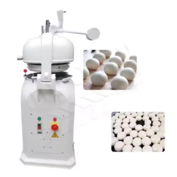 The machine is designed with a sturdy motor and durable construction, ensuring it can handle heavy usage in a bakery environment.
