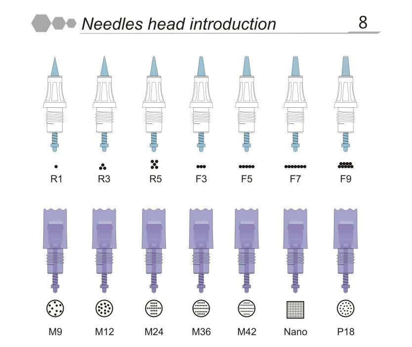 This tattoo machine works with various needle sizes including 1, 3, 5, 7, and 12 pins, allowing for versatility in different tattooing techniques.