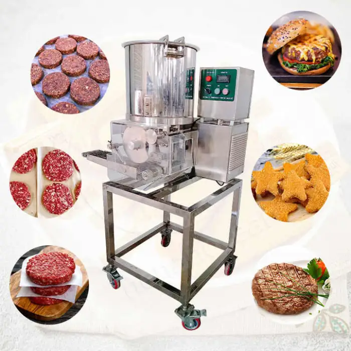 An automatic electric forming machine from OCEAN designed to produce burger patties and similar shaped products. It is built from 304 stainless steel and intended for restaurants, catering and high-volume producers.