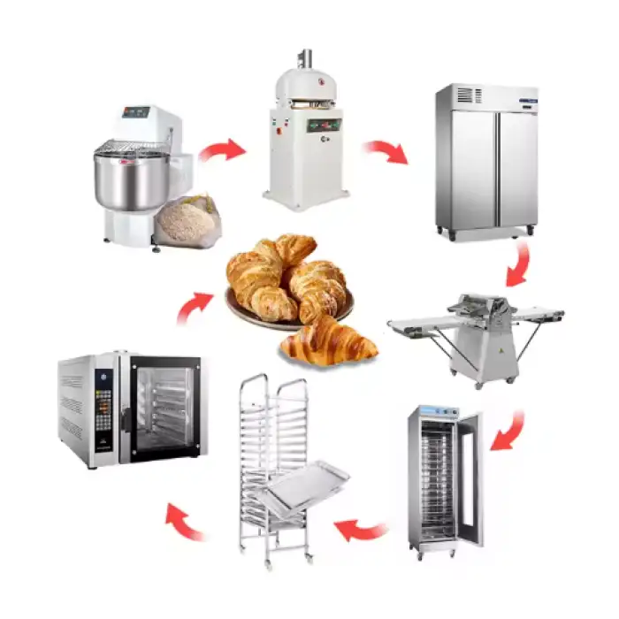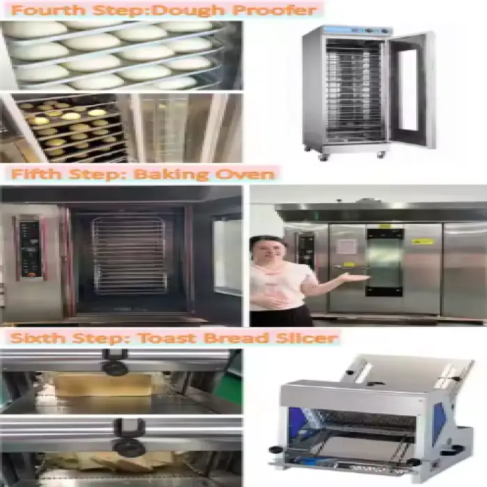 The baking equipment supports various oven types, including deck ovens, electric ovens, and gas ovens, providing flexibility for different baking needs.