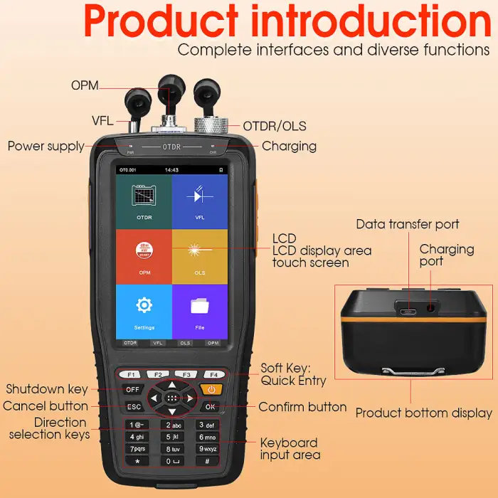 This tester is designed for testing fiber optic cables in FTTX networks, maintenance of optical networks, installation of new fiber optic lines, and network troubleshooting and diagnostics.