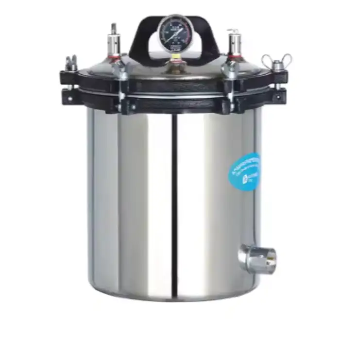This autoclave is used in medical settings, research laboratories, and educational institutions for effective sterilization.