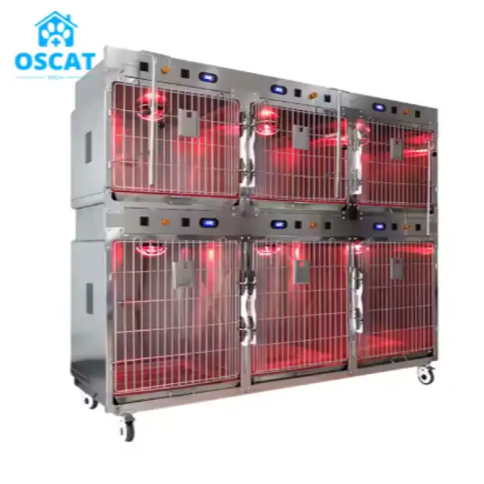 The main purpose of the OSCAT Veterinary Stainless Steel Light Oxygen Therapy Pet Cage is to provide a safe and comfortable environment for pets during treatment, especially for post-operative care and oxygen therapy.