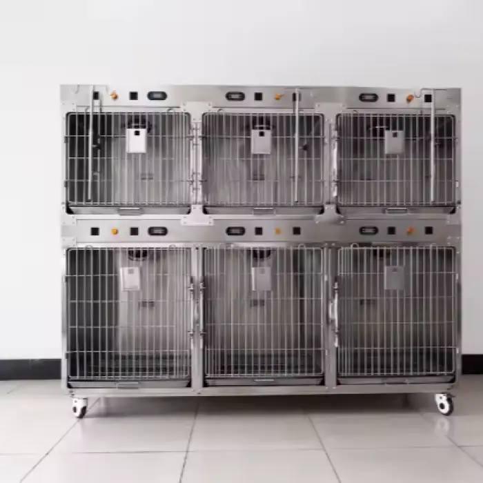 The cage is specifically designed for dogs, making it ideal for veterinary clinics and hospitals that treat canine patients.