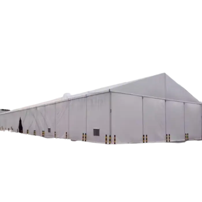 The tent can accommodate up to 500 people, depending on interior layout (seating, tables, aisles) and local safety regulations. Final capacity depends on the chosen span, length and room layout.
