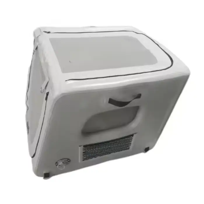 The inflatable travel kennel is designed for small animals such as dogs, cats, and even reptiles.
