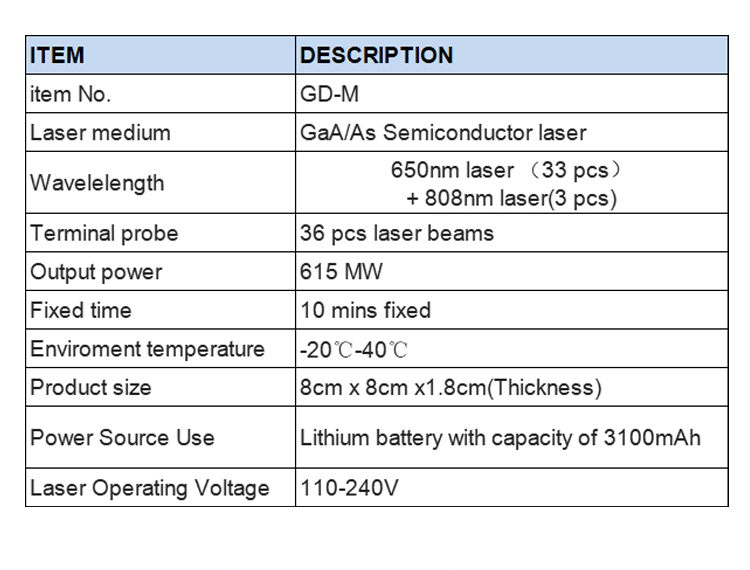 The GD-M model is equipped with 650nm Low Level Laser (LLLT) technology, which provides targeted treatment to alleviate pain, promote healing, and support overall well-being.