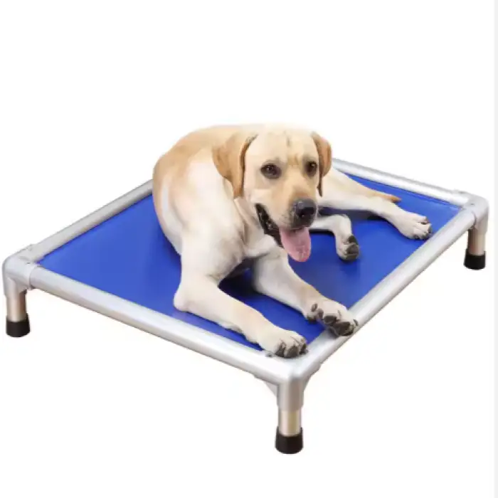 The dog bed is made from eco-friendly aluminum alloy, ensuring durability and comfort.