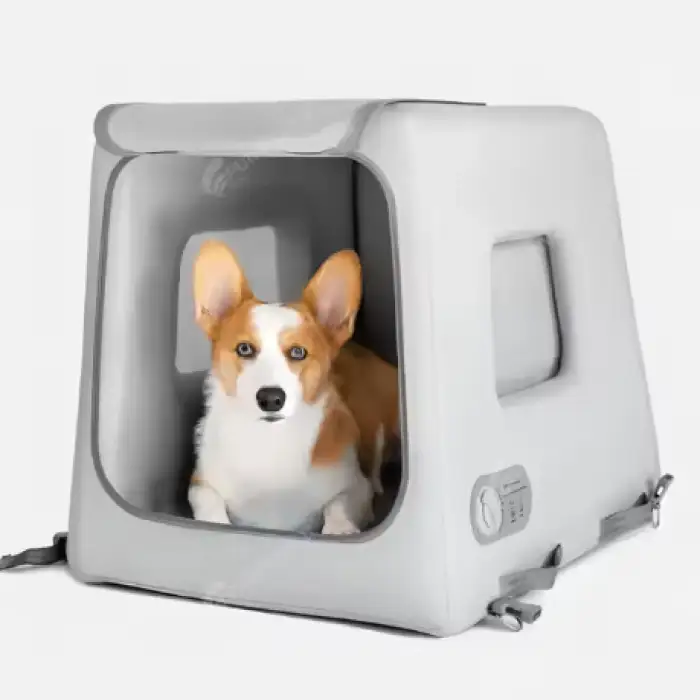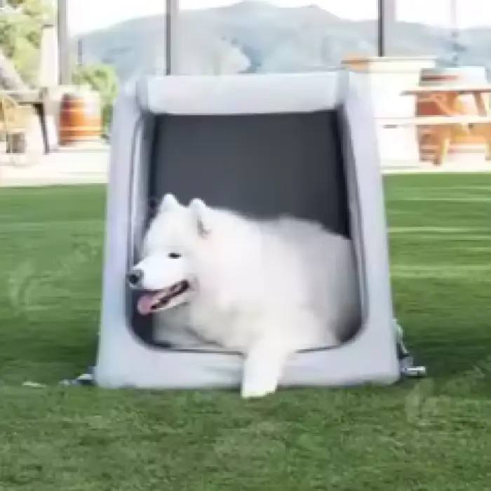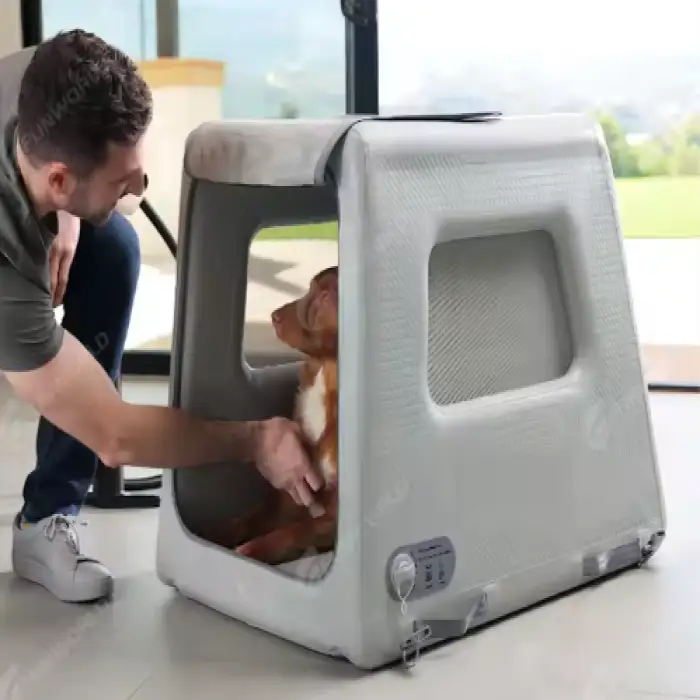 The inflatable kennel is easy to set up. Simply use the included air pump to inflate the kennel to your desired firmness.