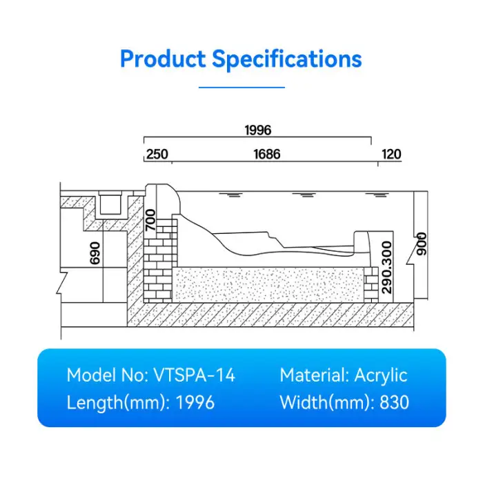 The dimensions of the Pikes Vtspa-14 are 1996 x 880 mm.