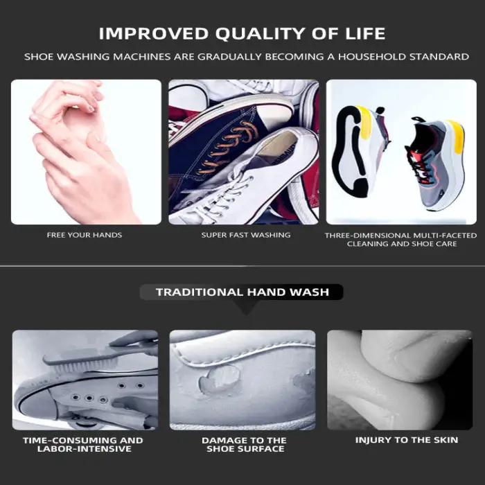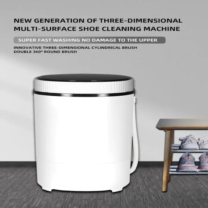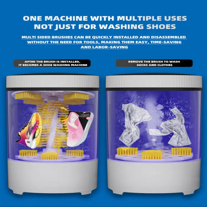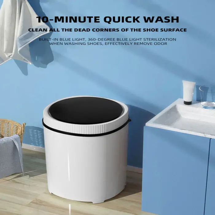 The washing machine has a capacity of 7.5 ml, making it suitable for cleaning shoes and small clothing items like socks and underwear.