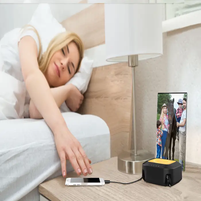 The Portable Charger Wireless Charging Hub is compatible with any Qi-enabled devices, including most smartphones and wireless earbuds.