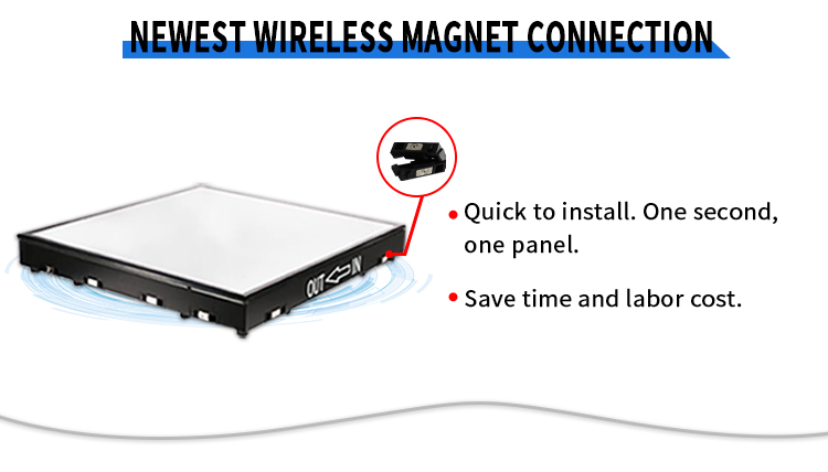 The panels connect wirelessly with a magnet connection, allowing for quick setup.