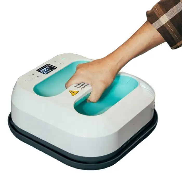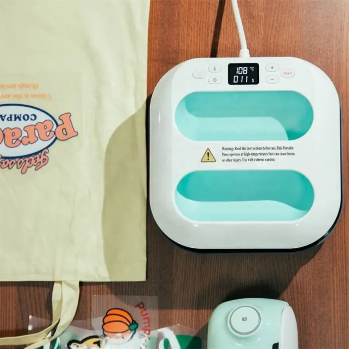 Simply plug in the machine, set the desired temperature and time, place your fabric and transfer design, and press down to transfer the image.