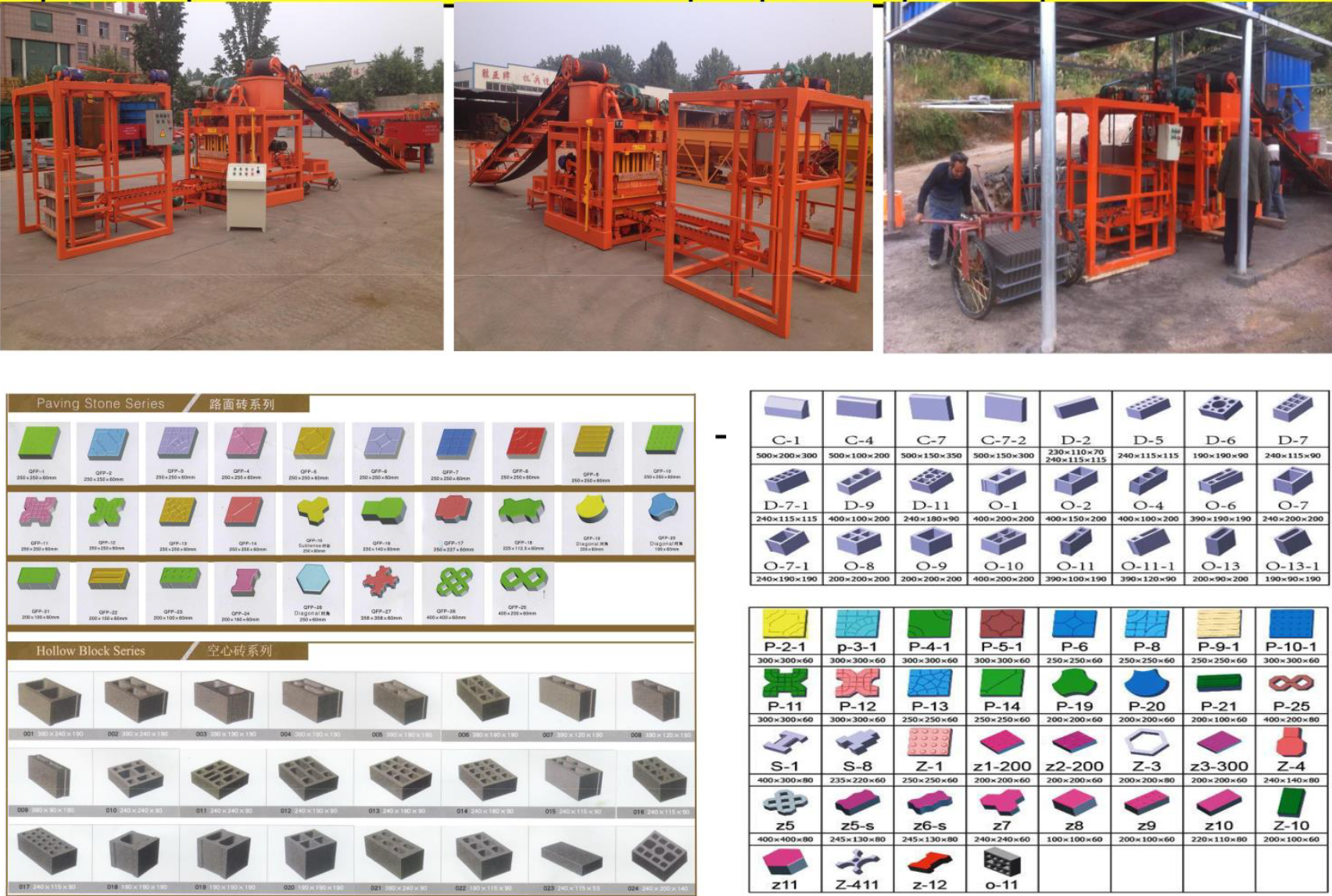 The QTJ4-25 can produce hollow blocks, solid blocks, porous blocks, and other types of concrete products depending on the molds used.