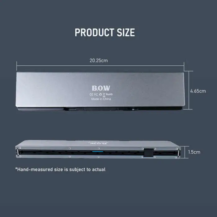 When folded, the keyboard measures 10 x 10 x 5 cm, making it compact enough to fit into small bags or cases.